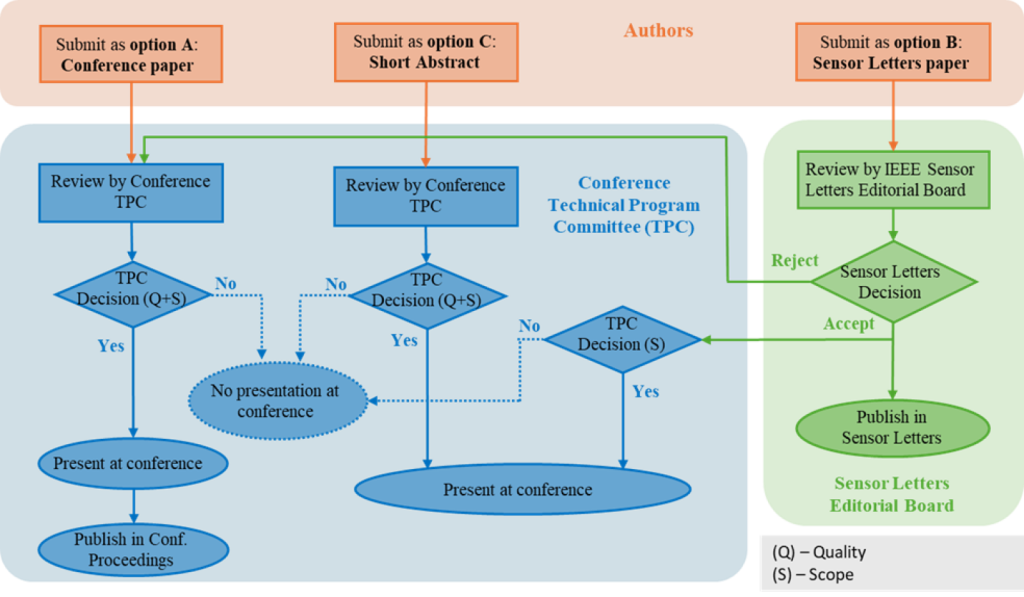 Papers which cannot be accepted under OPTION B will get one chance to resubmit it under OPTION A after appropriately addressing reviewers comments of IEEE Sensors Letters. Please note that this will not be submitted automatically - you will need to resubmit it yourself. These re-submitted papers will undergo to the peer-review process of the conference's Technical Program Committee and, if accepted, will be allowed to be presented in the conference, so are the accepted papers of OPTION A.
